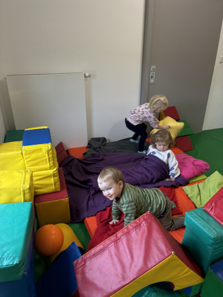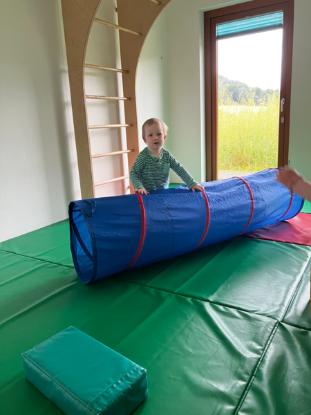 In unserem Bewegungsraum ist immer etwas los! Hier können sich die Kinder so richtig austoben, ausprobieren und ihre Grenzen entdecken. Ob Klettern, Springen, Balancieren oder Rollen. Bewegung macht nicht nur Spaß, sondern fördert auch Selbstvertrauen, Körpergefühl und Teamgeist. Die Kinder denken sich eigene Spiele aus, helfen einander beim Klettern und es entstehen jeden Tag neue Abenteuerwelten.
